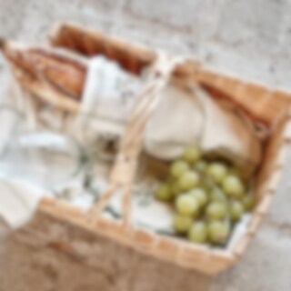 Natural colored braided basket with handles. Perfect for mushroom picking or picnics.