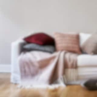 Soft and comfortable plaid in woven wool mix with fringes in white.
