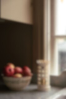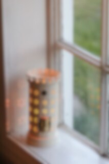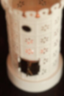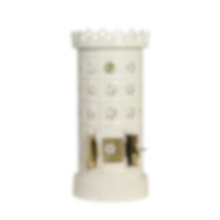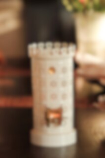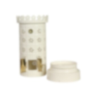 Beautiful tealight holder with a design inspired by a classic mini-sized tiled stove. The cream white surface and perforated sections allow the light from the tealight to shine out in a decorative way.