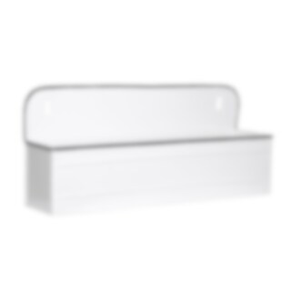 Lacquered sheet metal box in white with a grey edge. Use for storing dish brushes and detergents in the kitchen. Two holes for hanging.