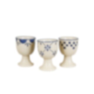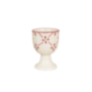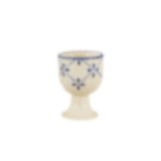 Egg cup in stoneware with an old-fashioned motif of a decorative clover check pattern in blue. Nice to combine and mix with the other motifs.