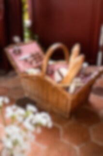 Picnic set in classic basket design with a charming and timeless feel. The wicker basket is carefully woven and lined inside with a beautiful red checkered fabric. Perfect for a cozy picnic in the park, at the beach, or in the garden.