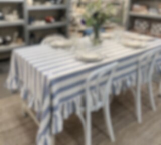 Tablecloth Made from 100% organic cotton with a classic wide-striped pattern and a beautiful frill. Very nice to match with other products in the same series.