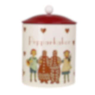 Large Christmas tin with a traditional Swedish Christmas motif and the text Pepparkakor, for gingerbread cookies. Silicone ring that makes the lid close tightly. Perfect for storage or serving at the Christmas smorgosbord.