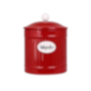 Round tin in red with a sign in white with the text Julgodis. From the tin series Hugo.