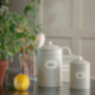 Round tin in beige with a lid. Sign in white with the text Kaffe. From the tin series Hugo from Strömshaga.