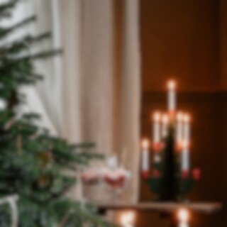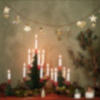 Christmas trees made in Sweden out of wood, with candleholders in metal for chime candles.