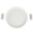 Beige three-tier cake stand with decorative dotted edges. Perfect as a cake platter or for serving at a buffet. Equipped with a handle on top for easy transport.