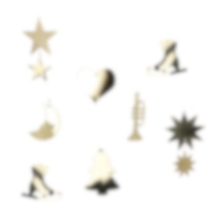 Ornaments in genuine brass with classic Christmas motifs in the form of stars, skates, a Christmas tree, a trumpet, a moon and a heart. Hang it in the Christmas tree and let the ornaments reflect the light around.