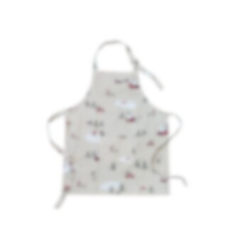 Låt den lilla bagaren vara med i köket med detta söta förkläde med vintrigt mönster och i ekologisk bomull. Reglera längden med knytbandet i nacken, liten ficka framtill och knytband runt midjan.