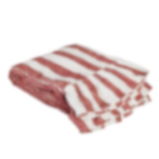 Duk i 100% ekologisk bomull med klassiskt rödrandigt mönster och en vacker volang. Fin att matcha med andra produkter i samma serie.