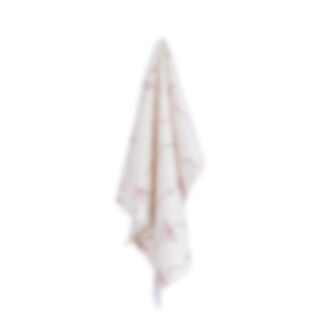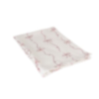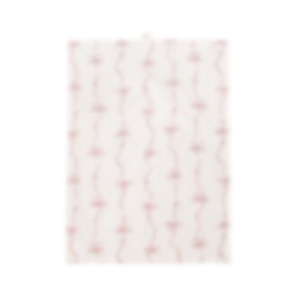 Kökshandduk i 100% ekologisk bomull med röda rosetter. Band i ena hörnet för upphängning. Fint att kombinera tillsammans med de andra textila delarna med rosetter.