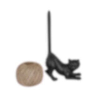 Dekorativ snörhållare i form av en katt, tillverkad i svartgjutjärn. Kan också användas till toalettpappret eller tofsar och smycken i badrummet.