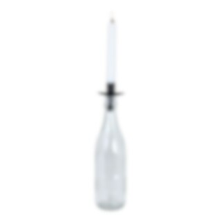 Svart ljushållare i metall för kronljus. Ljushållare med ljusmanchett att sätta i en glasflaska. Använd denna ljushållare för att skapa en kreativ och personlig inredningsdetalj.