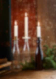 Ljushållare i vitlackad metall för kronljus. Ljushållare med ljusmanchett att sätta i en glasflaska. Använd denna ljushållare för att skapa en kreativ och personlig inredningsdetalj.