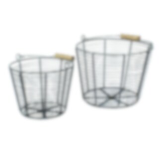 Liten trådkorg med trähandtag för förvaring av t.ex ägg och frukt eller fyll med något trevligt och ge bort som en gå-bort-present med cellofan.