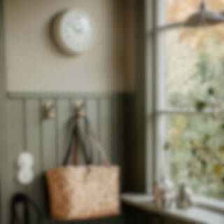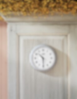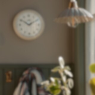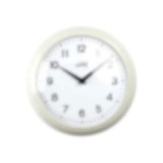 Väggklocka i klassisk och retro design med vit urtavla och krämfärgad kant. Klockan är märkt med texten Svenska Urfabriken, Göteborg. Passar utmärkt i köket, hallen eller vardagsrummet.