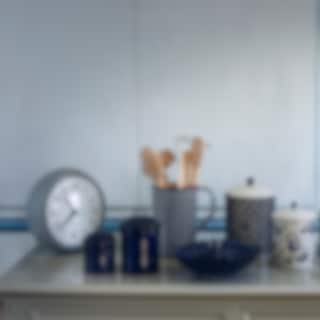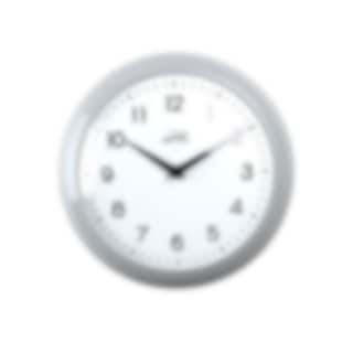 Väggklocka i klassisk och retro design med vit urtavla och grå kant. Klockan är märkt med texten Svenska Urfabriken, Göteborg. Passar utmärkt i köket, hallen eller vardagsrummet.