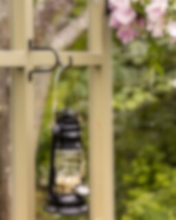 Snygg väggkrok i svart metall. För upphängning av exempelvis en ljuslykta, stormlykta eller en hängande blomkruka.