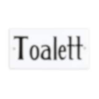Plåtskylt i emaljfinish med texten "Toalett". Två alternativ för upphängning; antingen med medföljande dubbelhäftande etikett eller med spik i skyltens två hål.