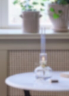 - Tänd lampan och justera lågan så att den inte blir för hög genom att skruva upp eller ner veken