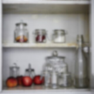 Glasburk med lock, passar i badrummet för t.ex tops och bomull eller i köket till diverse förvaring.