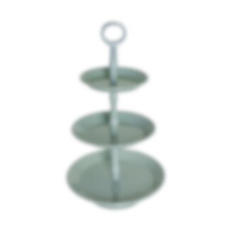 Grönt kakfat i tre våningar med dekorativa prickiga kanter. Perfekt som tårtfat eller servering till buffén. Handtag högst upp för lätt förflyttning.