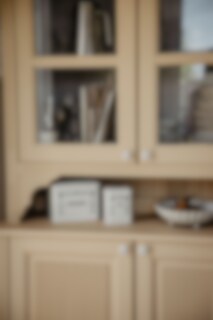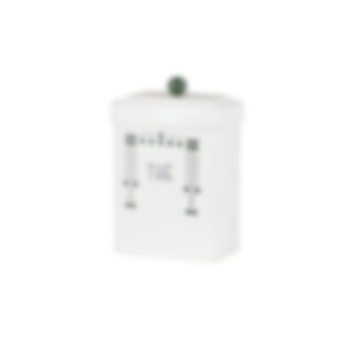 Plåtburk med lock och gammaldags motiv av en dekorativ bård och texten thé. Plåtburken är handgjord vilket innebär att olikheter och ojämnheter kan förekomma.