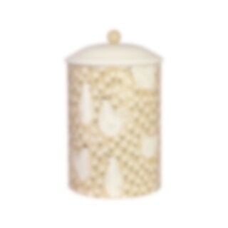 Plåtburk med motiv av små söta hönor. Lock i vitt med en rund gul knopp. Perfekt att ha framme till påsk.