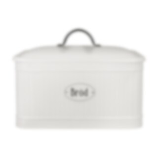 Rektangulär plåtburk med lock och en vit skylt med texten "Bröd". Från plåtburksserien Hugo från Strömshaga.