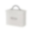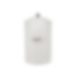 Rund, vit plåtburk med lock och vit skylt med texten Thé. Från plåtburksserien Hugo från Strömshaga.