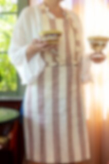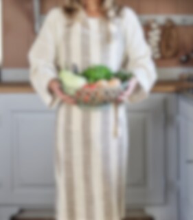 Förkläde i 100% ekologisk bomull med klassiskt bredrandigt mönster. Praktisk ficka framtill, knytband i midjan och reglerbart band i nacken. Fin att matcha med andra produkter i samma serie.