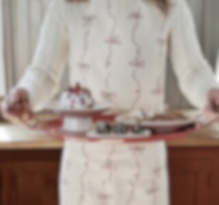 Förkläde i 100% ekologisk bomull med söta rosetter. Praktisk ficka framtill, knytband i midjan och reglerbart band i nacken. Matcha den lilla bagaren med vårt barnförkläde med rosetter.