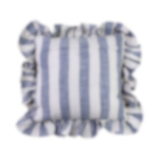 Kuddfodral i 100% ekologisk bomull med klassiskt bredrandigt mönster och en vacker volang. Dold dragkedja på baksidan. Fin att matcha med andra produkter i samma serie.
