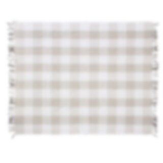 Pläd av skön bomull med vävt storrutigt mönster i vitt och beiget med fransar. Passar fint på balkongen, uteplatsen eller på picknicken.
