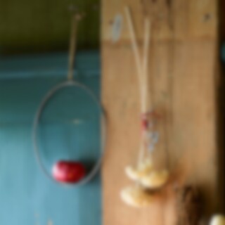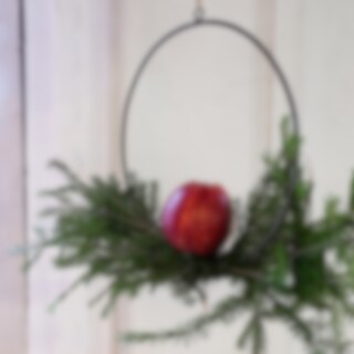 Hängande fågelmatare med spets att fästa äpple eller talgboll på. Fungerar även fint att dekorera med t.ex kvistar, eukalyptus, torkade blommor.