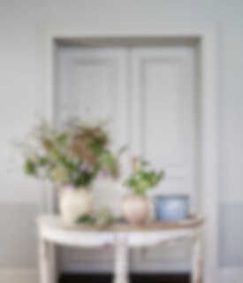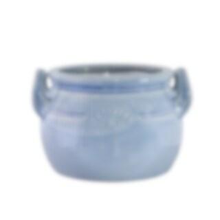 Keramikkrus i en vacker blå nyans med dubbla handtag, perfekt för både praktisk förvaring, som kruka och dekorativt inslag i hemmet. Med sin stilrena design och subtila glans är detta krus en tidlös klassiker som passar in i både lantlig och modern inredning.  Perfekt för praktisk förvaring av exempelvis köksredskap - eller använd det som en charmig kruka för växter.
